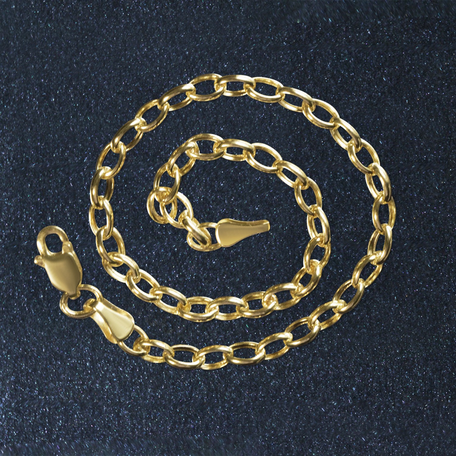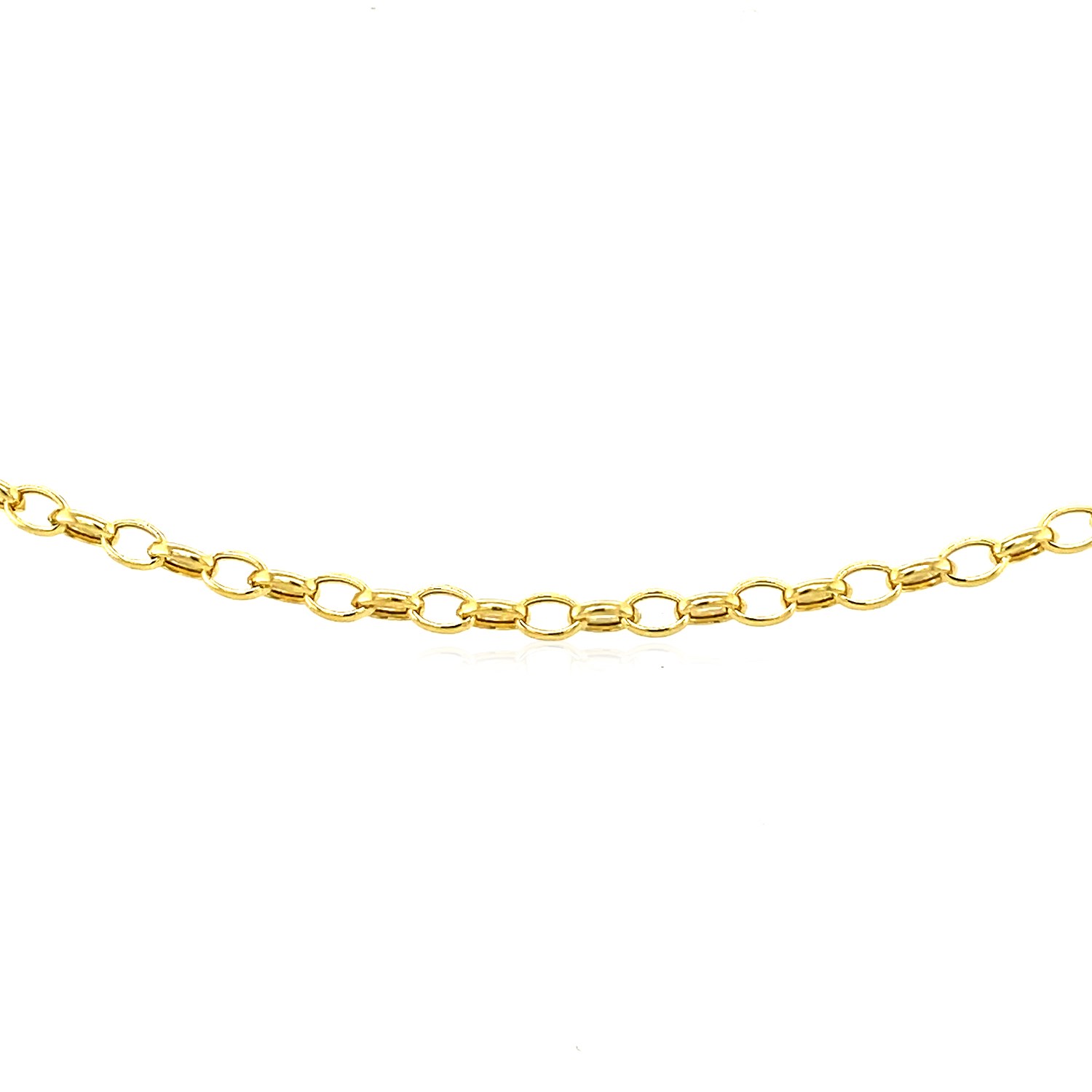 This oval rolo bracelet comes in 14k yellow gold and has a width of 3.2 millimeters. Secured with a lobster clasp.