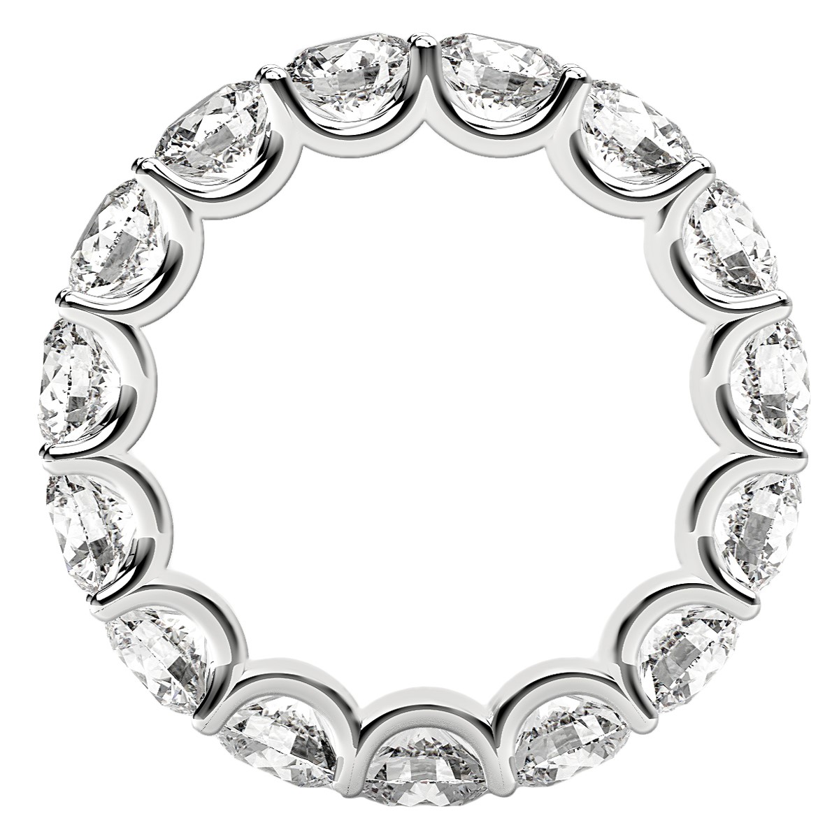 Intriguing curved prongs of glimmering 14k white gold encircle beautiful round cut lab grown diamonds with elegant, arch-like waves of shine in this spectacular eternity ring, adding contrast and organic shape to a traditional setting. This ring belongs to the Eternity Us collection.